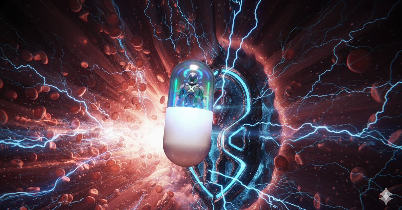 ทุกอย่างเริ่มต้นขึ้นในความมืด… และแรงบีบอัดวินาทีที่คุณโยนแคปซูลยาสีขาวมุกเข้าปากและกลืนน้ำตามลงไป สำหรับคุณ มันคือกิจวัตรที่ใช้เวลาเพียงเสี้ยววินาที แต่สำหรับ “เอเจนต์-เอ็กซ์” (Agent-X) สิ่งมีชีวิตระดับโมเลกุลที่หลับใหลอยู่ภายในแคปซูลนั้น มันคือจุดเริ่มต้นของภารกิจกู้โลกที่เดิมพันด้วยชีวิต โลกภายนอกค่อยๆ เลือนหายไป แสงสว่างถูกตัดขาด แทนที่ด้วยผนังเนื้อเยื่อชื้นแฉะของหลอดอาหารที่บีบตัวเป็นระลอกคลื่น (Peristalsis) ผลักดันเขาลงสู่เบื้องล่าง ความมืดมิดในหลอดอาหารไม่ใช่สิ่งที่น่ากลัวที่สุด แต่มันคือสัญญาณเตือนถึงหายนะที่กำลังรออยู่เบื้องหน้า “เตรียมรับแรงกระแทก” เสียงเปลือกแคปซูลลั่นเอี๊ยดอ๊าดเมื่อสัมผัสกับความร้อนระอุภายในร่างกาย ทันใดนั้น พื้นที่ยืนอยู่ก็ยุบตัวลง เอเจนต์-เอ็กซ์ ร่วงหล่นลงสู่ทะเลสาบกรดเดือดพล่าน…(กระเพาะอาหาร) ที่นี่คือแดนประหารสำหรับผู้หลงทาง น้ำย่อยที่มีฤทธิ์กัดกร่อนรุนแรง (Hydrochloric Acid) สาดซัดไปทั่วราวกับพายุคลั่ง แต่นั่นไม่ใช่จุดจบของเขา เอเจนต์-เอ็กซ์ ถูกออกแบบมาให้ทนทานต่อสภาวะนรกนี้ เขาอดทนรอเวลา… รอจนกว่าประตูด่านล่าง (Pyloric Sphincter) จะเปิดออก แล้วถูกเหวี่ยงเข้าสู่ลำไส้เล็ก ดินแดนแห่งการดูดซึม ณ ผนังลำไส้เล็ก วิลไล (Villi) นับล้านโบกสะบัดราวกับทุ่งหญ้าใต้น้ำ คอยดักจับสารอาหารและสิ่งแปลกปลอม เอเจนต์-เอ็กซ์ แทรกตัวผ่านผนังเซลล์ที่บางเฉียบ ลอดผ่านด่านตรวจคนเข้าเมือง แล้วกระโจนลงสู่ทางด่วนสายหลักของร่างกาย