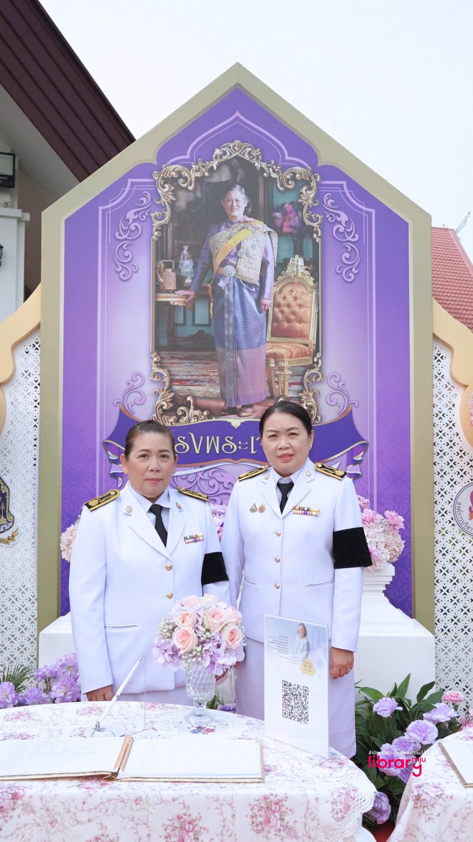 2 เมษายน 2569 นางอริศรา สิงห์ปัน ผู้อำนวยการสำนักหอสมุด พร้อมด้วย นางสาวเบญจรัตน์ ศุภอุดมฤกษ์ รองผู้อำนวยการสำนักหอสมุดฝ่ายบริการและกิจการพิเศษ เป็นตัวแทนมหาวิทยาลัยแม่โจ้ เข้าร่วมพิธีเนื่องในโอกาสวันคล้ายวันพระราชสมภพสมเด็จพระกนิษฐาธิราชเจ้า กรมสมเด็จพระเทพรัตนราชสุดาฯ สยามบรมราชกุมารี และวันอนุรักษ์มรดกไทย